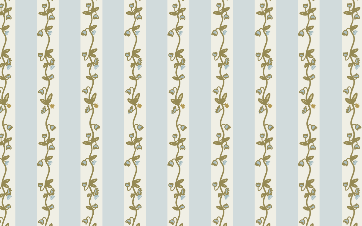 Laura Ingles Floral Stripe in Blue- Fabric by the Yard