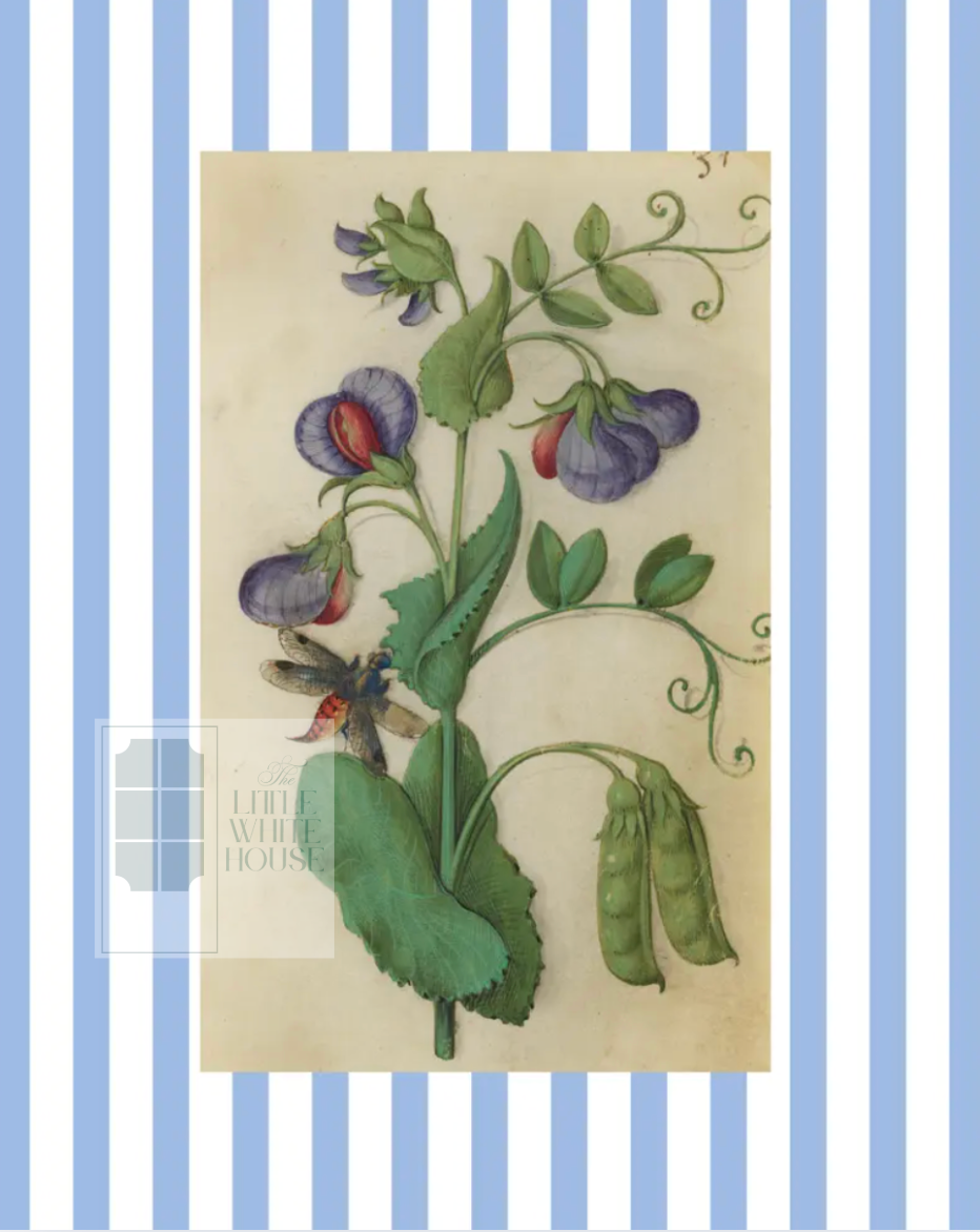 Botanical Study on pink and white stripe ground Giclee print on thick archival matte paper- finished size 8x10