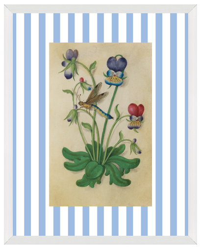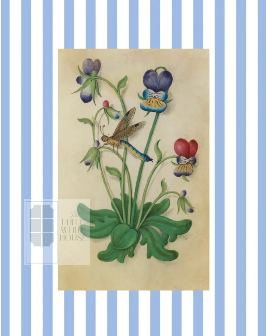 Botanical Study on pink and white stripe ground Giclee print on thick archival matte paper- finished size 8x10