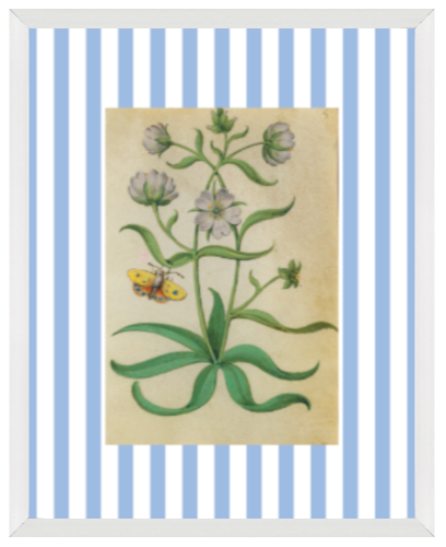 Botanical Study on pink and white stripe ground Giclee print on thick archival matte paper- finished size 8x10
