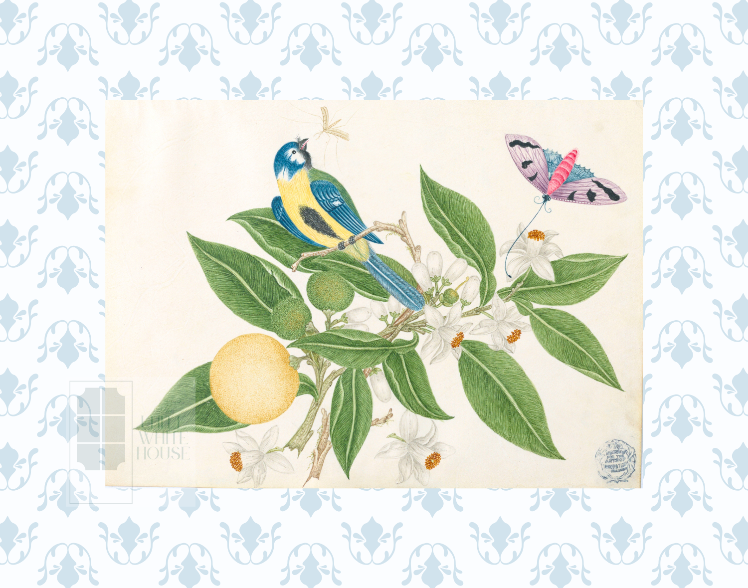 Botanical Study on soft blue geometric ground Giclee print on thick archival matte paper- finished size 11 x 14