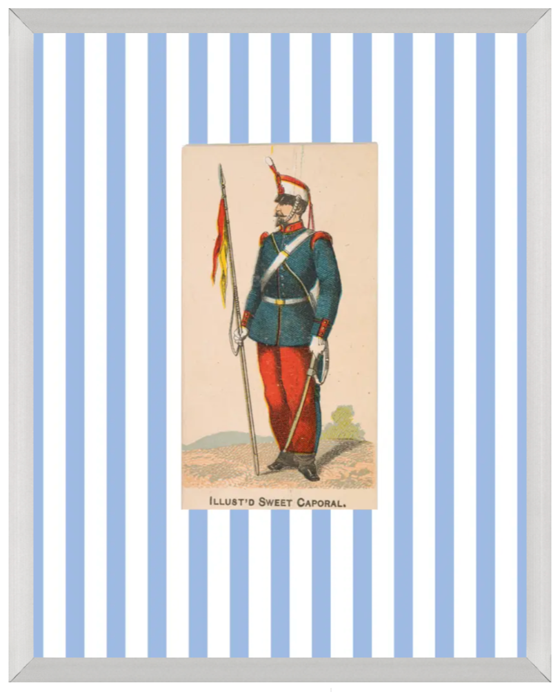 Looks great on its own or in a grouping. Each solider sits differently upon the ground design as it keeps its original shape and form. The background stripe gives the illusion of a decorative mat and gives continuity to the unique soldier prints. (Watermark is not on delivered print).