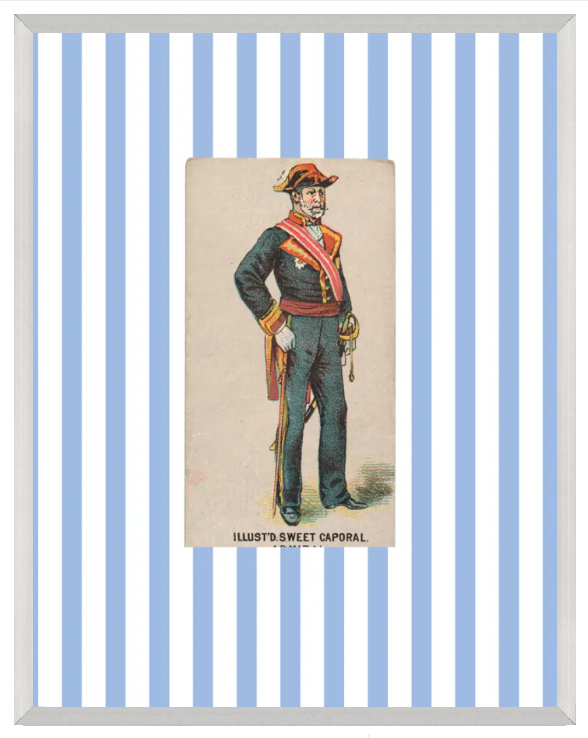 Vintage Soldier in Uniform on blue and white patterned ground Giclee print on thick archival matte paper- finished size 8x10