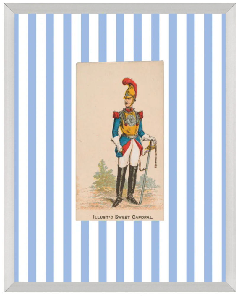 Looks great on its own or in a grouping. Each solider sits differently upon the ground design as it keeps its original shape and form. The background stripe gives the illusion of a decorative mat and gives continuity to the unique soldier prints. (Watermark is not on delivered print).